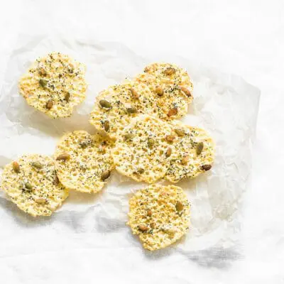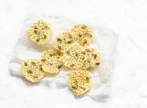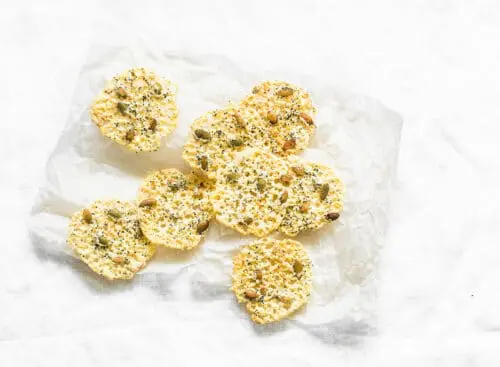 E comunque, ti suggerisco di accompagnare queste chips keto al formaggio con un bel tuffo in salsa guacamole, salsa dip o un tuffo classico di maionese!